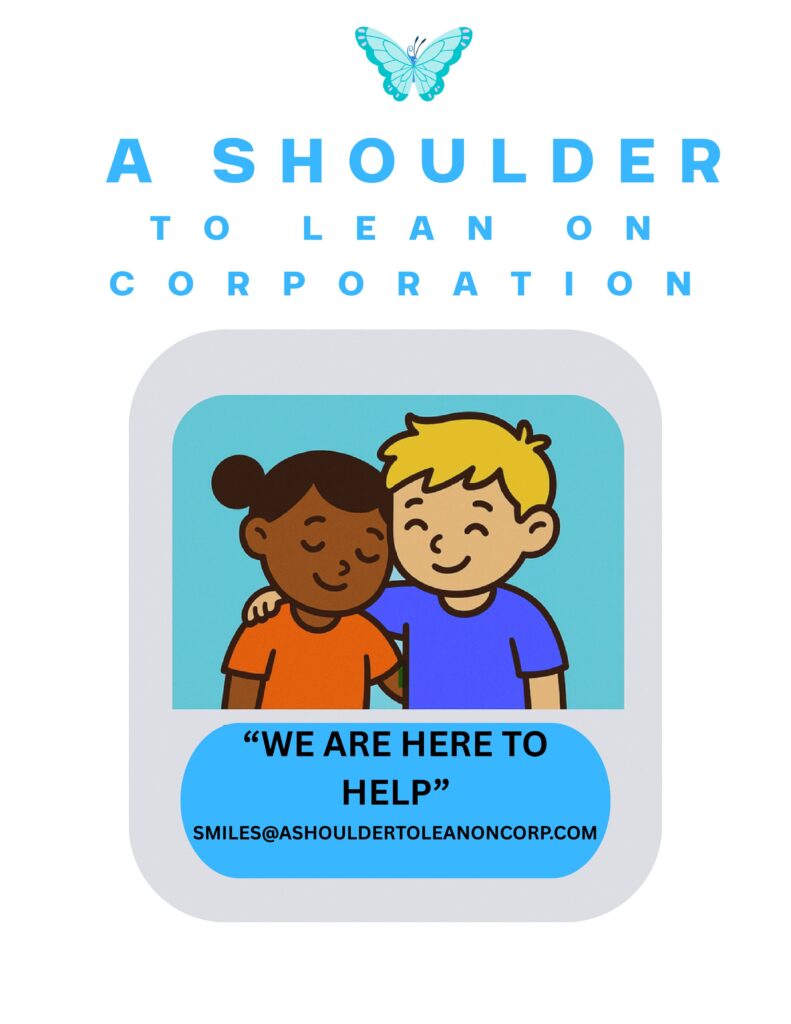 A Shoulder To Lean On Corporation is a registered 501(c)(3) non-profit public charity. EIN: 39-4559442.